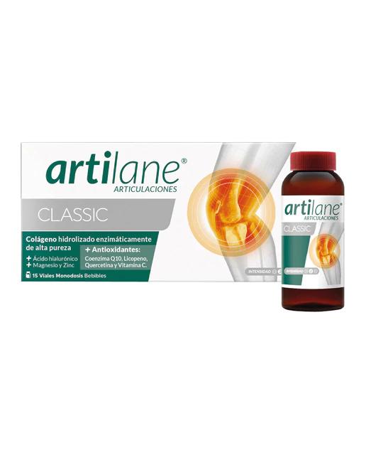 Artilane Pro 15 Viales Monodosis. Es un complemento alimenticio formulado a base de Colágeno hidrolizado enzimáticamente de alta pureza, ácido hialurónico, concentrado de tomate con un 2% de Licopeno, Quercetina, Coenzima Q10, Vitamina C, Magnesio y Zinc. Beneficios;\r\n\r\n* El colágeno, contribuyen a conservar la masa muscular.\r\n\r\n* El colágeno, el Magnesio y el Zinc, contribuyen al mantenimiento de los huesos.\r\n\r\n* La vitamina C, favorece la formación de colágeno, para el funcionamiento normal de los cartílagos, huesos y piel.\r\n\r\n* La vitamina C junto con el magnesio reducen el cansancio y la fatiga.\r\n\r\n* El Zinc junto con la vitamina C, contribuye a la protección de las células frente al daño oxidativo.\r\n\r\n* El Magnesio, favorece al funcionamiento de los músculos, y combinado con zinc, contribuyen a la síntesis proteica.\r\n\r\nINDICACIONES\r\n\r\nArtilane Pro 15 Viales Monodosis. Indicado para complementar una dieta variada y equilibrada. \r\n\r\nCOMO USARLO, Artilane Pro 15 Viales Monodosis te recomienda tomar 1 vial al día directamente o diluido en un vaso de 150 ml de agua.\r\n\r\n\r\n