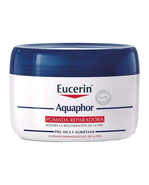 Probado clínicamente para acelerar el proceso de regeneración cutánea.\r\n-Suaviza y protege la piel extremadamente seca, agrietada, irritada y erosionada.\r\n-Acelera el proceso de regeneración de la piel irritada tras tratamientos dermatológicos superficiales o radioterapia.\r\n-Crea una barrera protectora que permite la transpiración.\r\n-Tolerabilidad probada en estudios clínicos.Eucerin AQUAPHOR, es el ungüento multipropósito más recomendado en los EEUU por dermatólogos y pediatras para el cuidado y recuperación de la piel seca y agrietada. Además forma una película protectora humectante que ayuda a sanar la piel.\r\n\r\nINDICACIONES\r\n\r\n•AQUAPHOR para el alivio de la piel asociada al Eczema: Calma y ayuda a sanar la piel agrietada y áspera durante las exacerbaciones del eczema, protegiéndola de futuros daños.\r\n•AQUAPHOR para la recuperación de la piel en procedimientos faciales: Suaviza y reduce la incomodidad, ayudando a la cicatrización natural de la piel.\r\n•AQUAPHOR para corredores y atletas: Ayuda a prevenir y sanar condiciones comunes en la piel del deportista, como ampollas, labios agrietados, enrojecimiento, etc.\r\n•AQUAPHOR para la piel del bebé: Ayuda a sanar la piel seca y agrietada, de las raspaduras menores, y la irritación provocada por el pañal.\r\n•AQUAPHOR ayuda a la cicatrización de las heridas: Protege la piel dañada y colabora con la cicatrización.\r\n•AQUAPHOR para la irritación asociada a radioterapia: Protege la piel, minimiza la sequedad y la irritación, y es seguro para ser utilizado sobre la piel agrietada.\r\n\r\nMODO DE EMPLEO\r\nAplicar tan frecuentemente como se requiera en las áreas afectadas.\r\n\r\nINGREDIENTES\r\nSu fórmula está compuesta por VASELINA para suavizar y proteger la piel, PANTENOL para acondicionar y restablecer las funciones óptimas de la piel, GLICERINA para humectar y nutrir y BISABOLOL para suavizar la piel desde el interior.