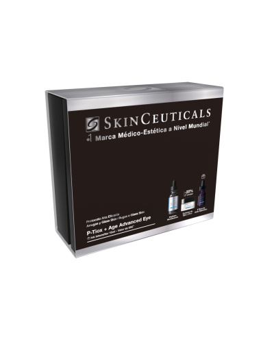El SKINCEUTICALS COFRE P-TIOX + A.G.E ADVANCED EYE es un tratamiento especializado diseñado para combatir los signos visibles del envejecimiento alrededor de la zona ocular. Este cofre incluye activos sinérgicos que actúan de manera efectiva para mejorar la apariencia de las ojeras, las arrugas y la pérdida de firmeza en el contorno de los ojos.